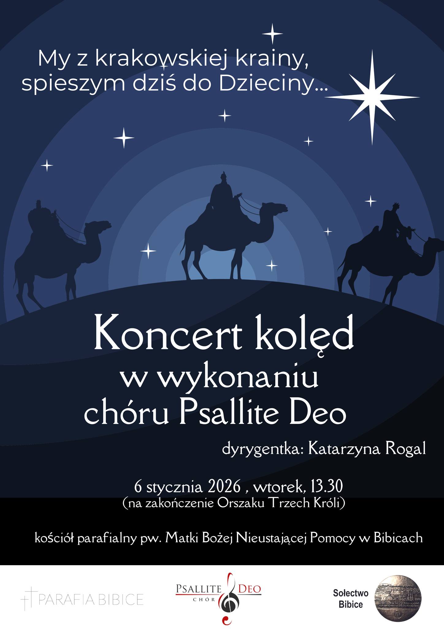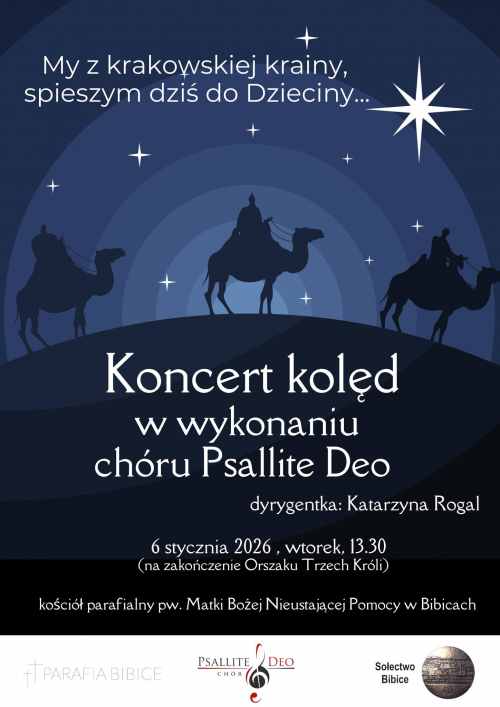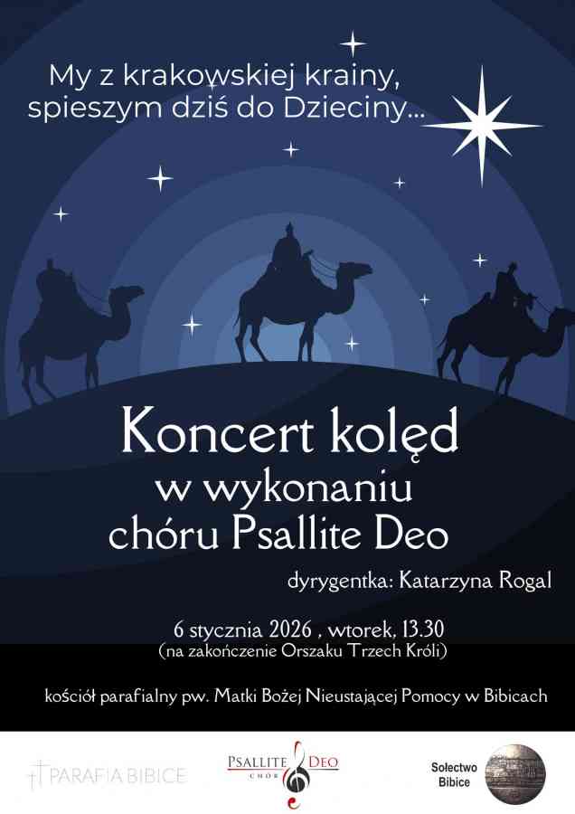 3. Około godz. 13.30 organizatorzy – Sołectwo Bibice i Parafia pw. Matki Boskiej Nieustającej Pomocy w Bibicach – zapraszają na Koncert kolęd i pastorałek Chóru Psallite Deo w kościele parafialnym w Bibicach.